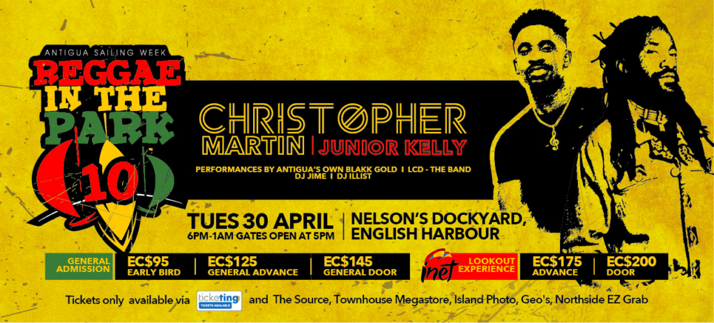 Tuesday, April 30th marks the 10th anniversary of Reggae in The Park, the annual mid-regatta concert during Antigua Sailing Week (ASW). To highlight the milestone of this anticipated musical event, the regatta will host it’s first ever Reggae in The Park Race Day with race starts at 10am. To further celebrate this epic event, the organizers have announced two headline acts for the 10th edition of this concert. Globally renowned artists Christopher Martin and Junior Kelly will step on the Nelson’s Dockyard stage Tuesday evening to entertain the thousands of Reggae in the Park fans who are to expected attend.