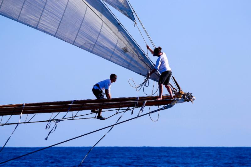 Now in Bermuda for the America’s Cup. Carlo Falcone’s Alfred Mylne-designed 1938 yawl, flying the flag for Antigua & Barbuda. The Antigua Bermuda Race was the first offshore race for over 10 years for the boat. © Ted Martin.